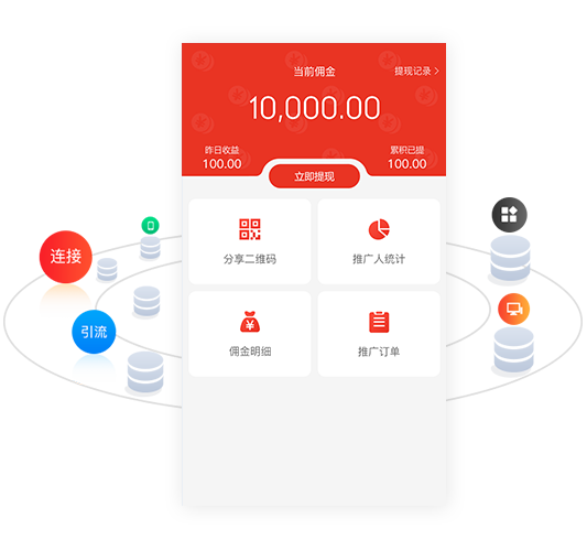 通过全民分销和指定分销方式,邀请微信好友下单赚取佣金,降低人工营销宣传成本,实现人人分享赚钱的乐趣,促进商城社交化推广